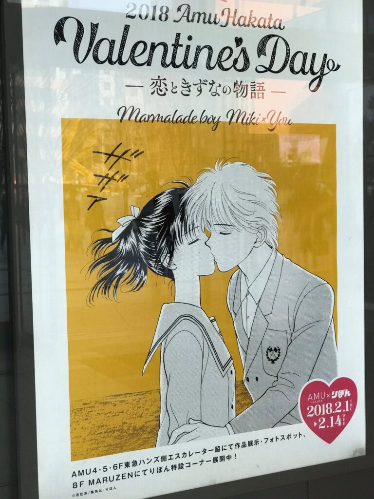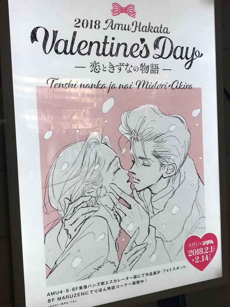 暮らしのあれこれ 久々の福岡 mitochondrion 2018年2月18日 先日福岡に仕事で日帰り旅でした。スケジュール的に全く観光もできませんでしたが、ほぼオフィス業務メインですので、久々の出張は楽しかったです。時期がバレンタインで、漫画雑誌りぼんとバレンタインのコラボイベントポスターがあり懐かしさもあって、思わず撮ってしまいました。漫画好きの同僚に即送ってあげましたが業務的なお礼のみでした笑お土産は博多通りもんとめんべい購入しました。リンクを貼るとき知ったのですが、めんべいの工場見学があるそうです。行って見たいな〜。