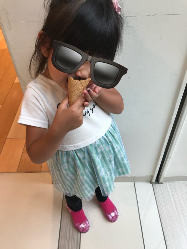 もう一方のお子はこれまた一丁前にアイスクリームを捕食してました笑