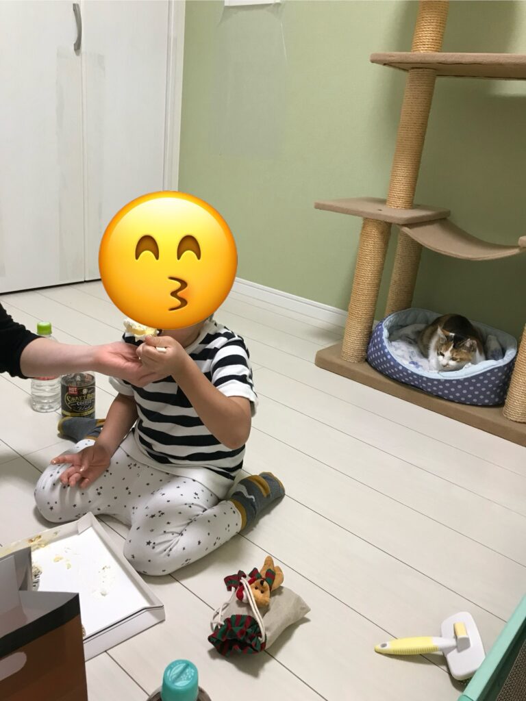 お子らには兄弟ができたみたいで、ケーキを買って来たら側で食べたい!とか言い出して